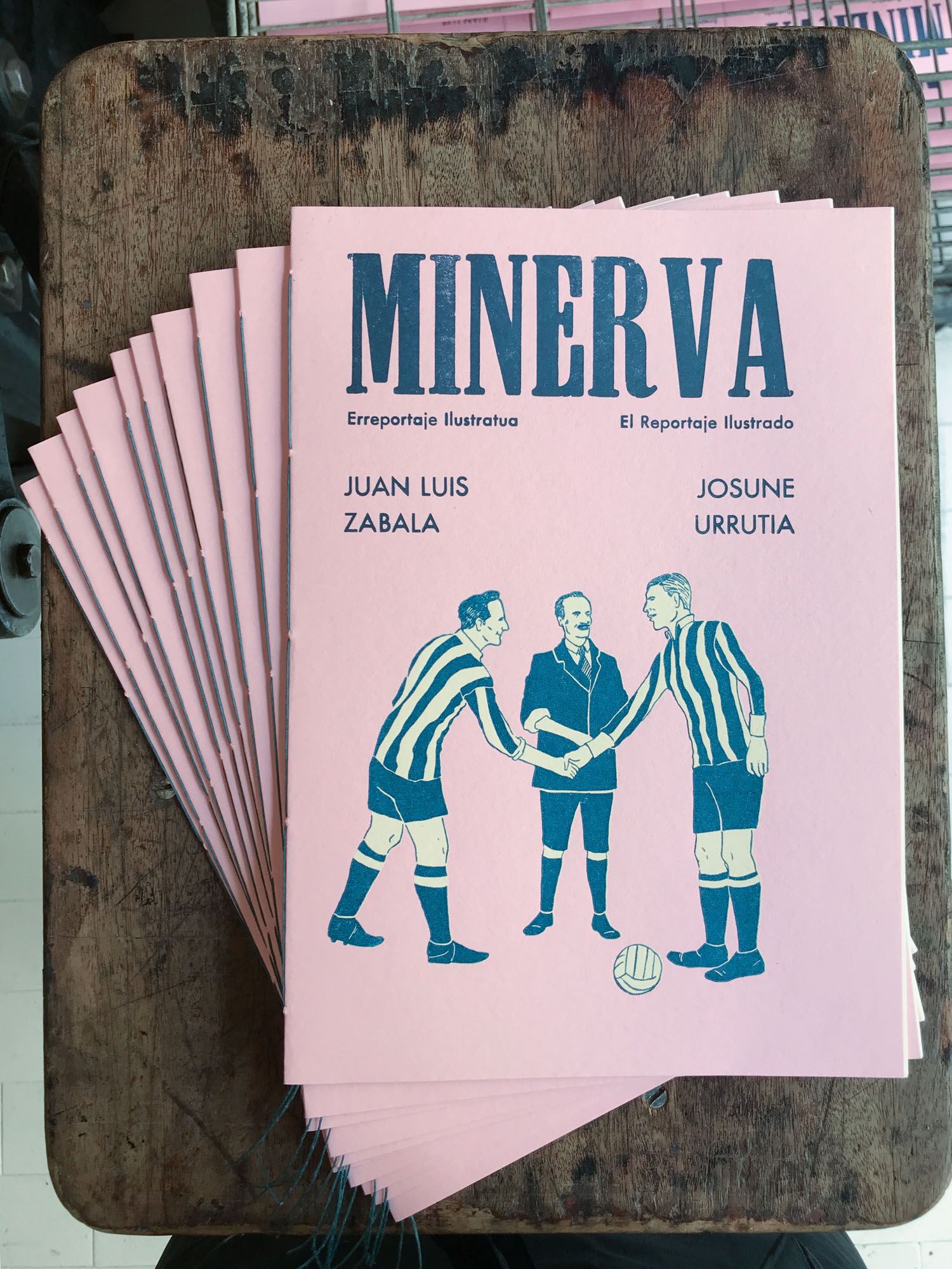 Minerva aldizkariaren bigarren zenbaki honetan, Juan Luis Zabala kazetari eta idazleak “Idazlea futbolariari galdezka Ramon Saizarbitoria eta Asier Illarramendi solasean” erreportaia idatzi eta Josune Urrutia artistak testuari ilustrazioak gehitu dizkio.